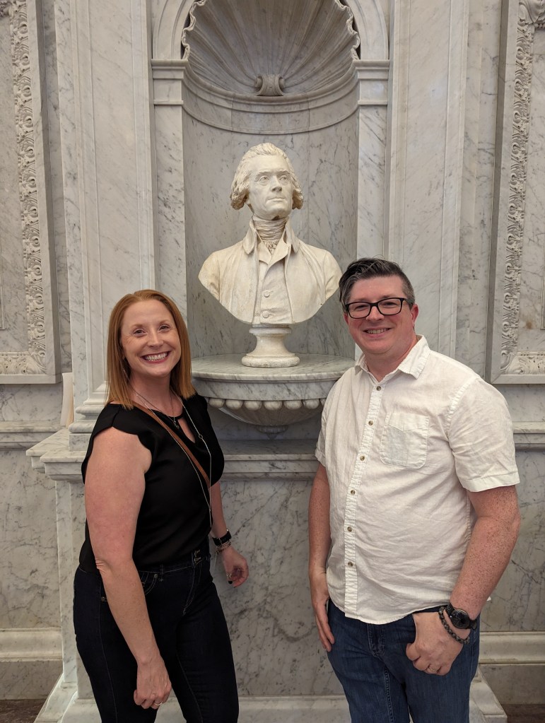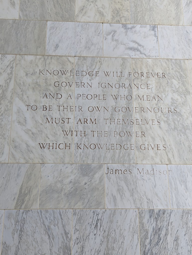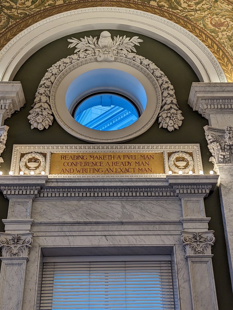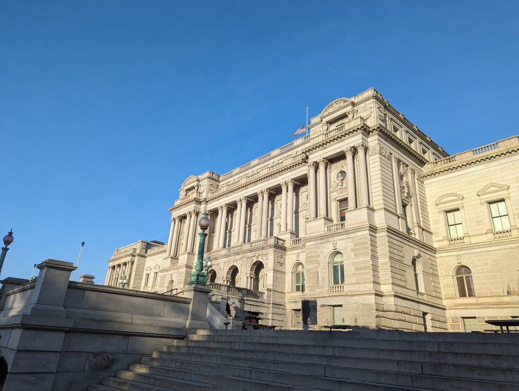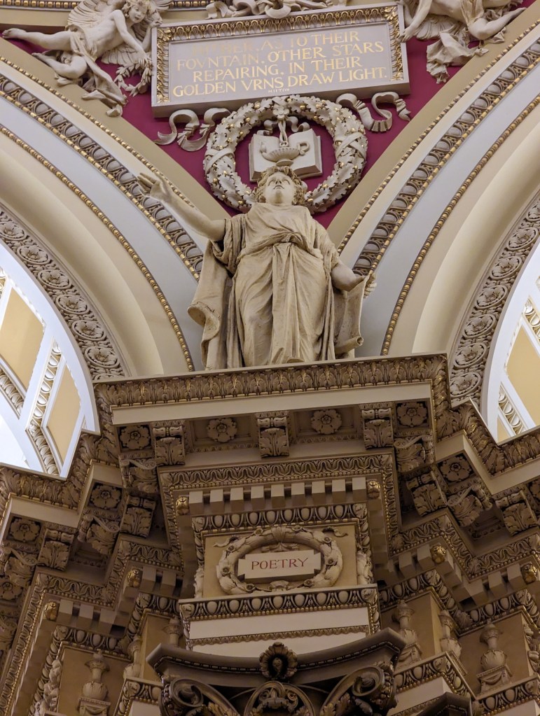 I’m a library nerd, so the one thing I knew I definitely wanted to try to do while we were in DC was visit the Library of Congress. And it turns out that they host a happy hour every Thursday evening! It also turns out that this happy hour is quite popular—the line for drinks was quite long. (Full disclosure: I used my phone’s “magic eraser” function to remove bystanders from a couple of the photos above.) A lot of people, in fact, were getting drinks and then immediately getting back in line for their next one. We just went through once, and then took the opportunity to wander around and see the place, which is stunning. Being in the main reading room was something I’ll never forget.